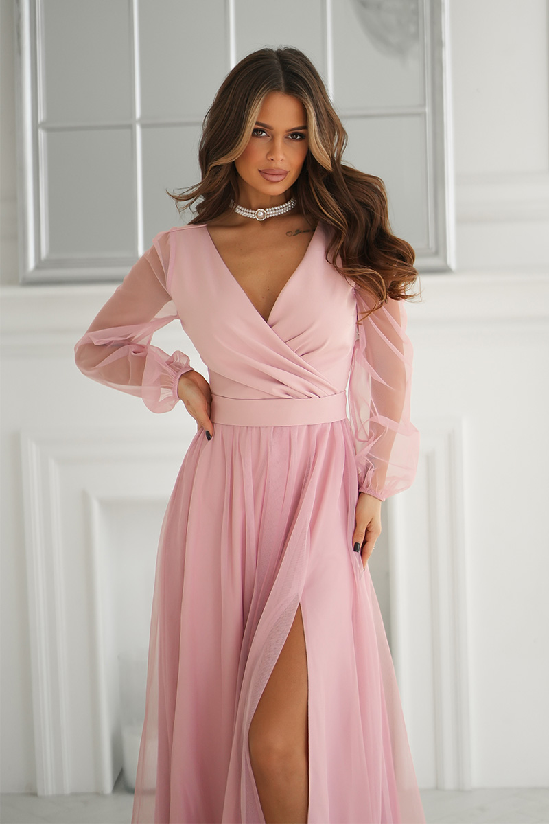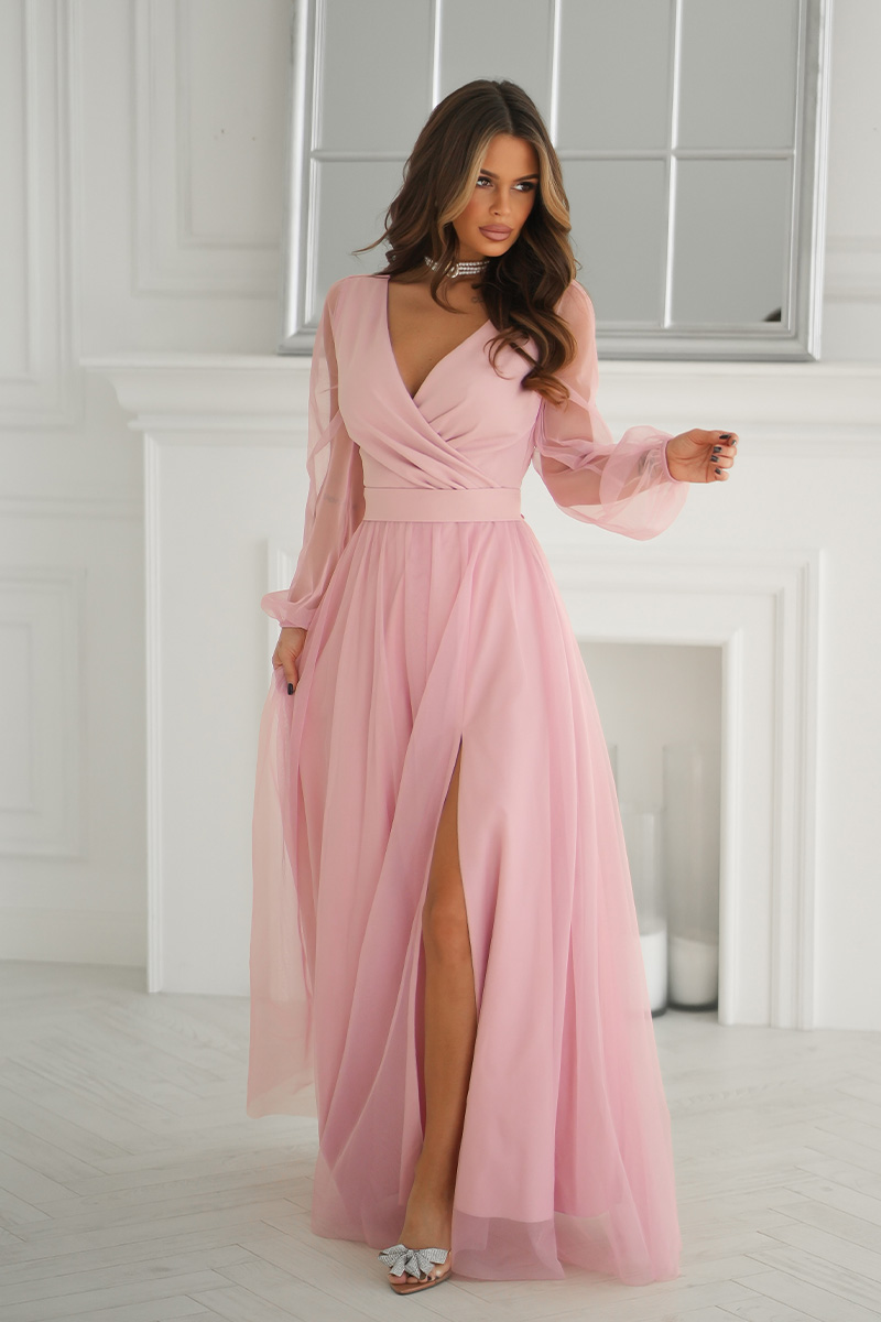 Läbipaistvate varrukatega maksikleit, roosa