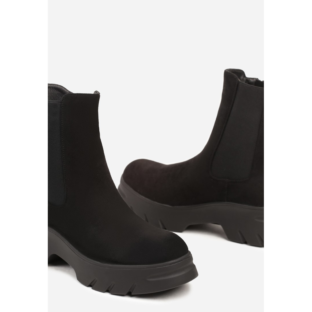 Suuruste tabel: standardsuurus Materjal: ökoseemisnahk Sisetald/vooder: karvvoodriga Jalalaba laius: neutraalne Soojendus: isoleeritud