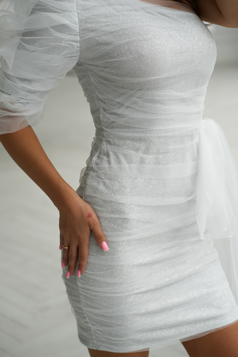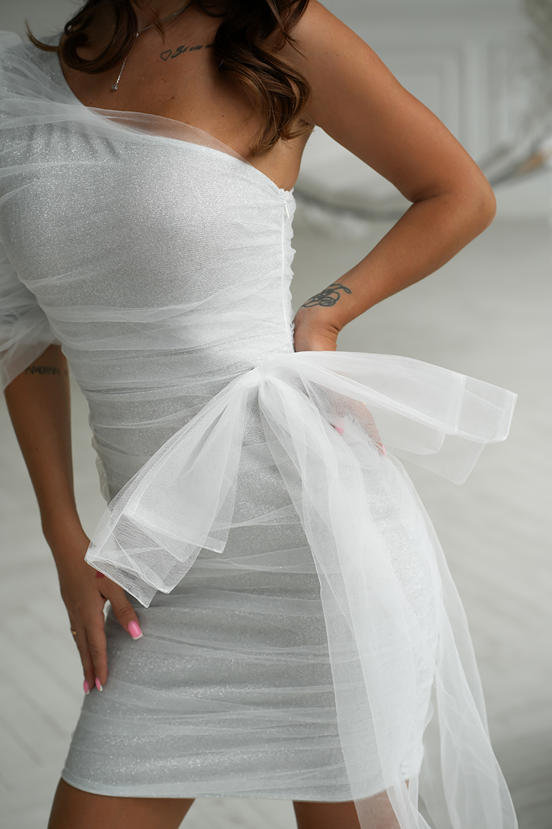 Ühe õlaga õhtukleit, valge