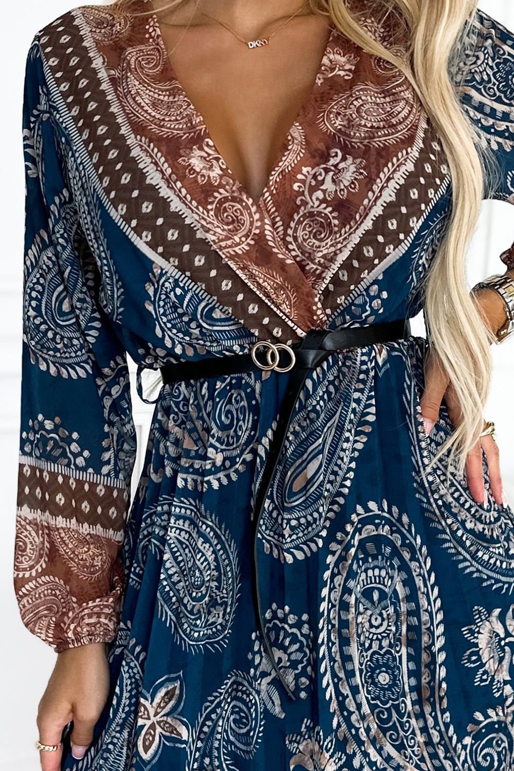 Plisseeritud kleit vööga, pruun