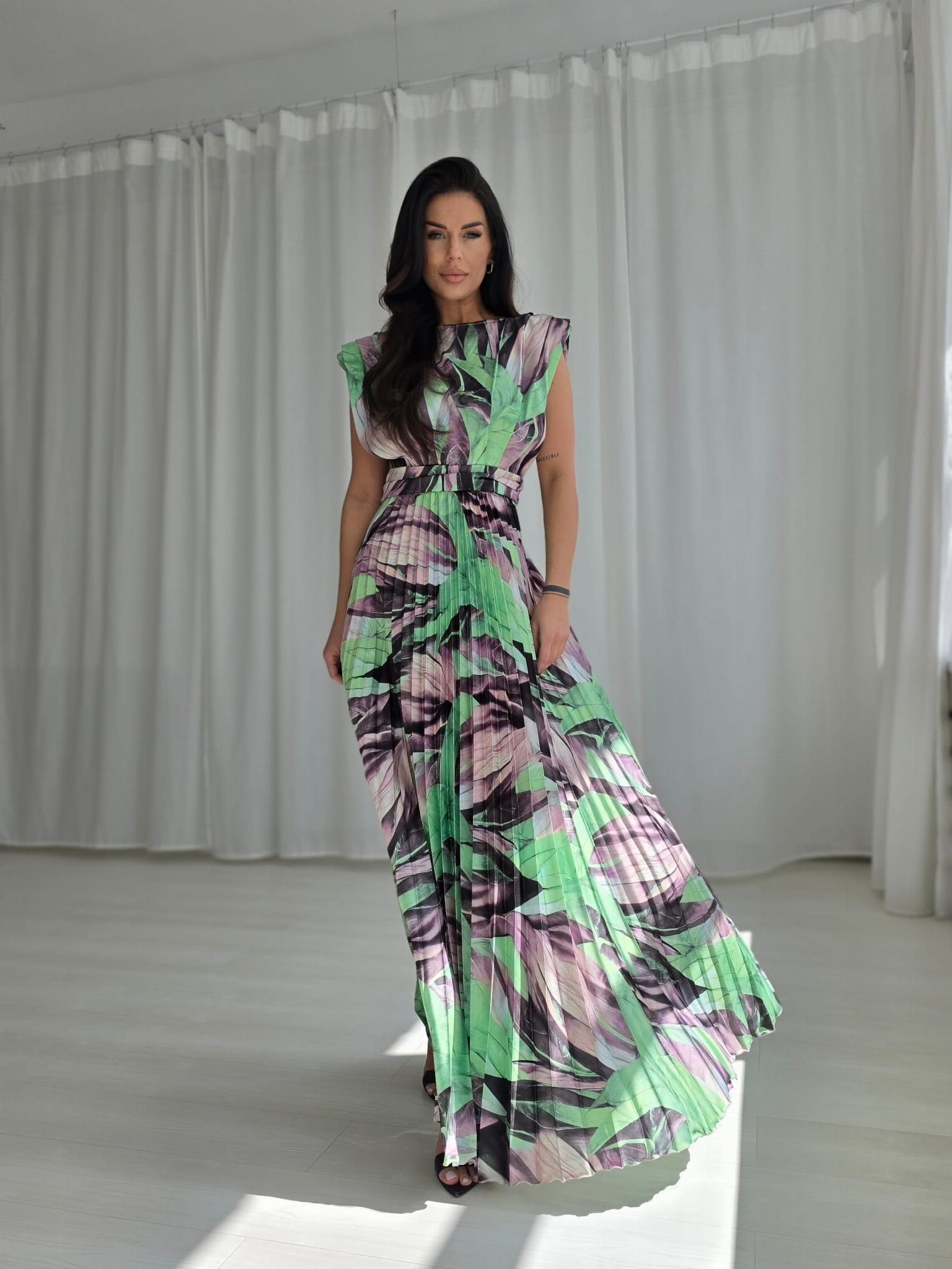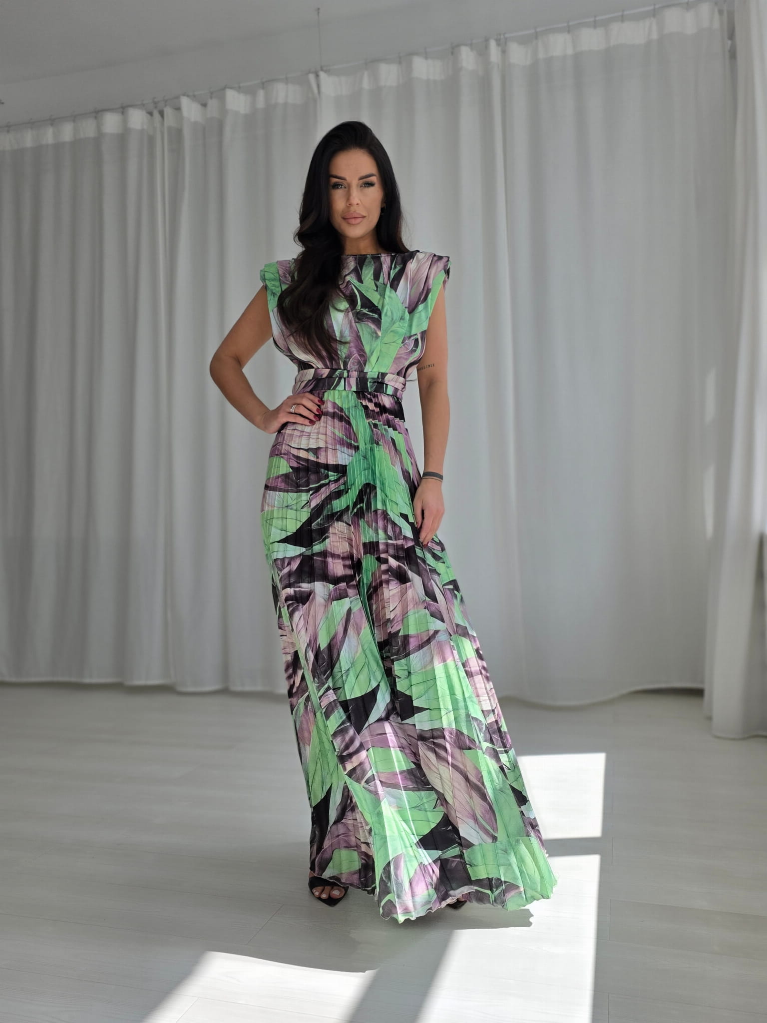 Plisseeritud maksikleit, roheline